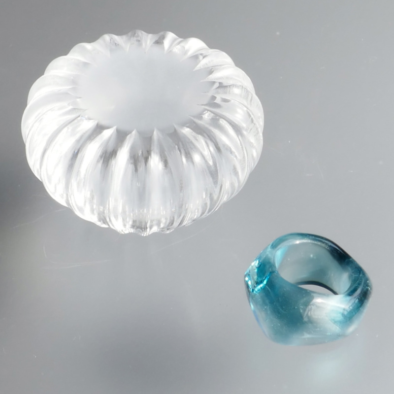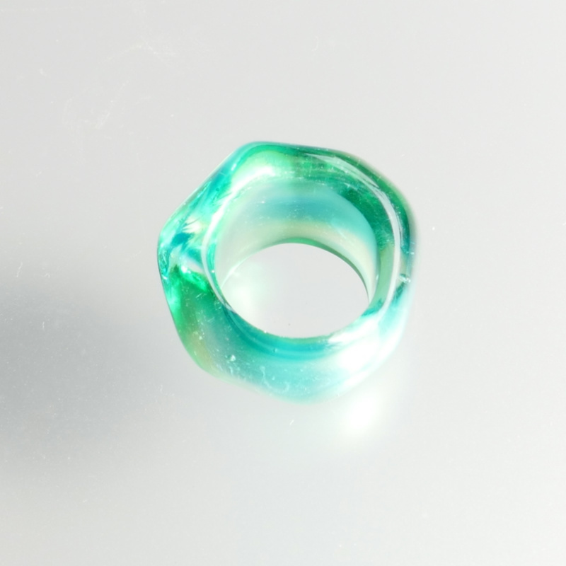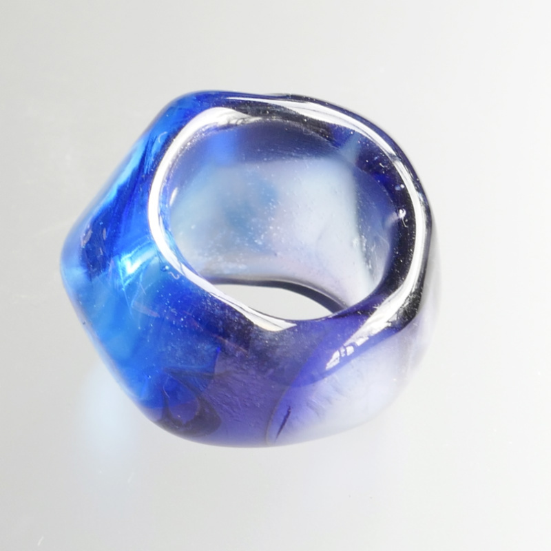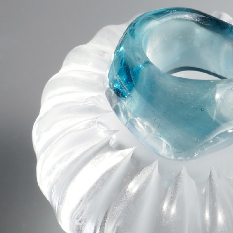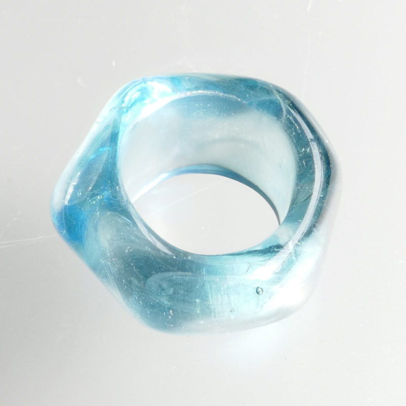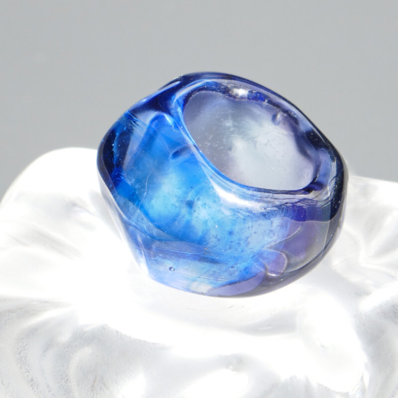 海を思わす深めのブルーと透明な陸のようなリングレストはそれが運命のよう溶け合い一つのオブジェとして生まれ変わります。