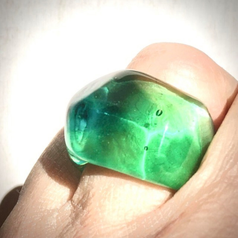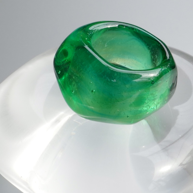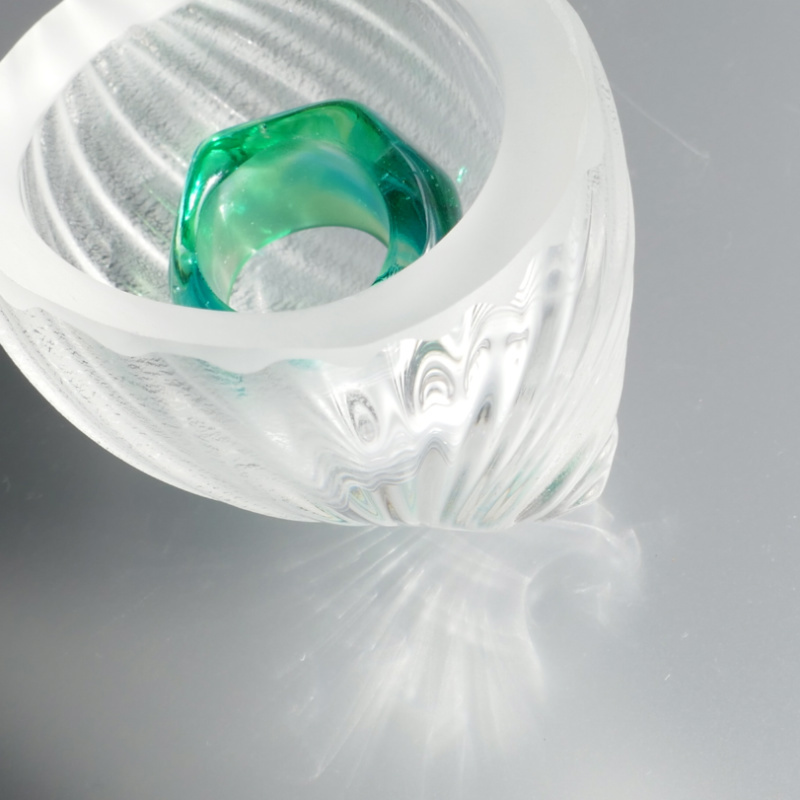同じく子どもの頃に浜辺の濡れた砂から拾い上げた美しいシーグラスをきっかけにガラスに映りこんだ不思議な様子を眺めるうち身近でありながらも宝石のようにキラキラと輝く美しさに心を囚われガラスを素材としたものづくりを始めるに至りました。
