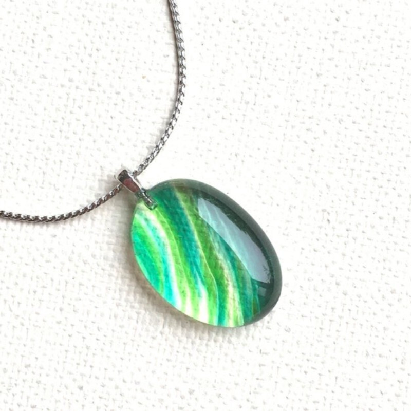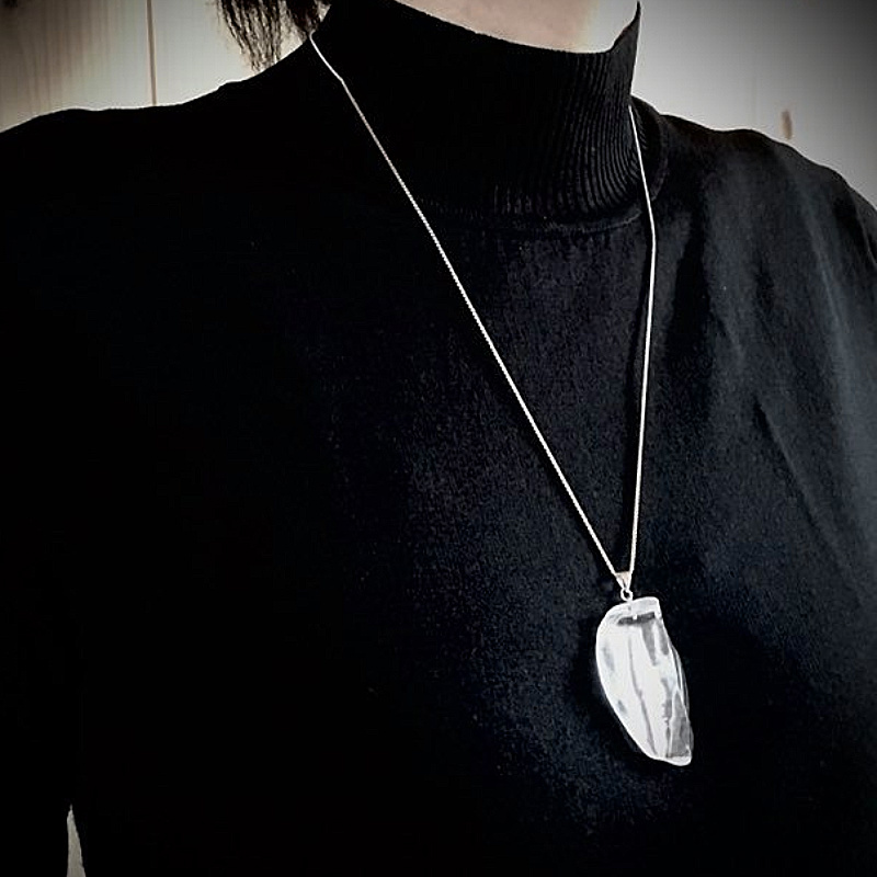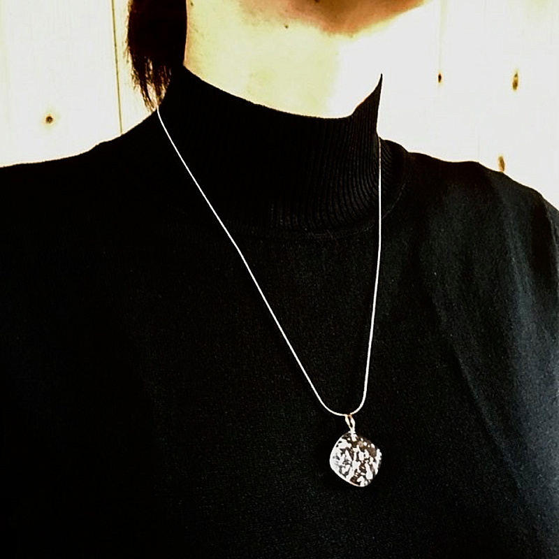 銀箔が透明さを引き立てているかのようにも感じます。清流の輝きを胸元に!