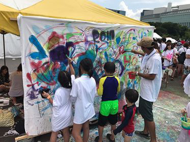 現在は、作品制作、ライブペイント、ウォールアート、ロゴデザインの他に、世代や言葉を超えて「あなたの楽しい!x 自分の楽しい!= 超楽しい!!!」を引き出すワークショップを全国で展開中。