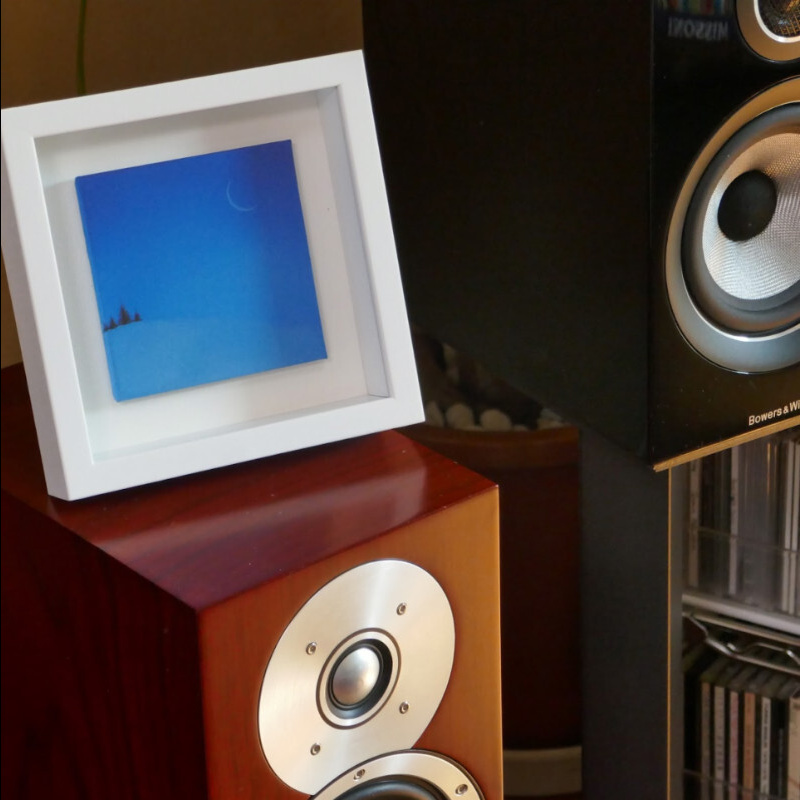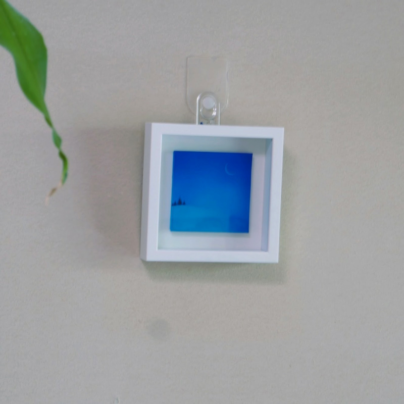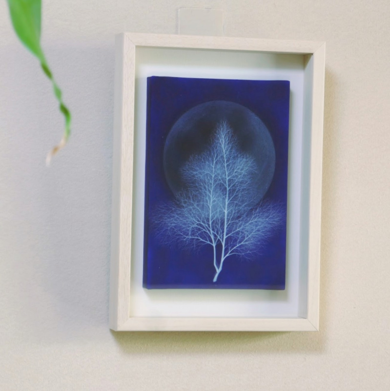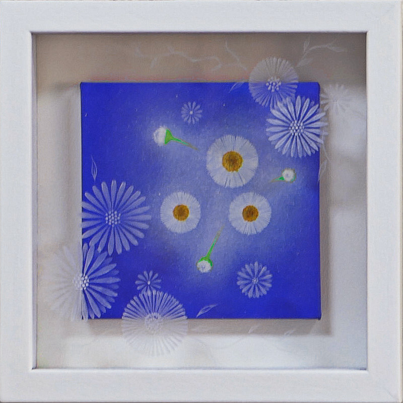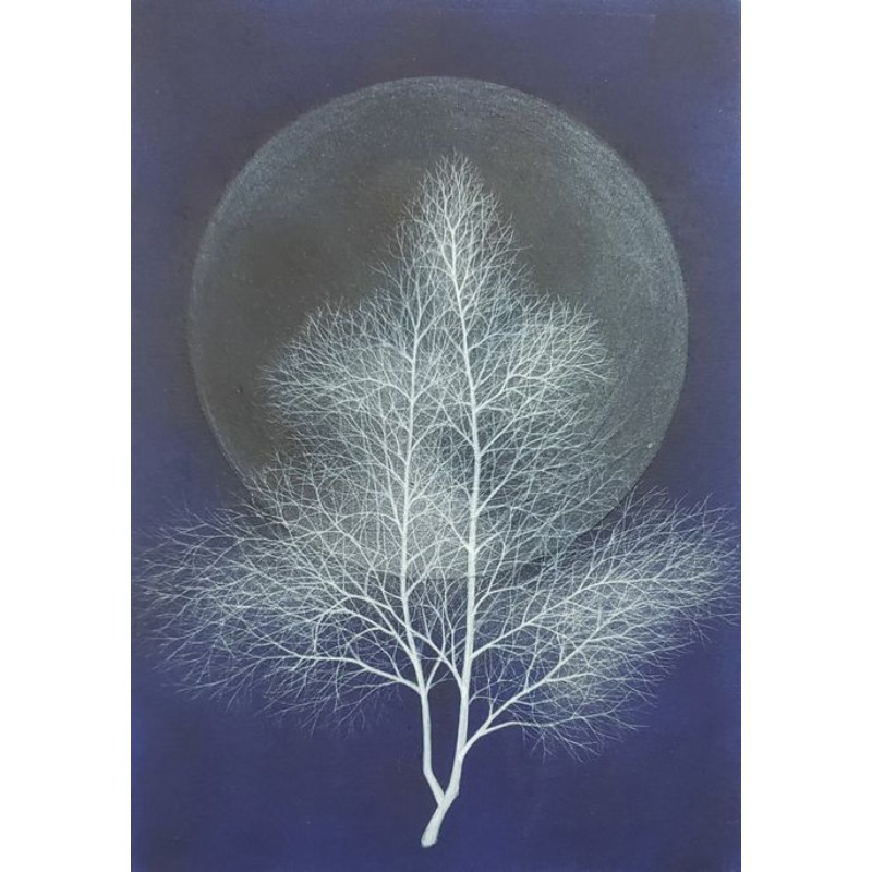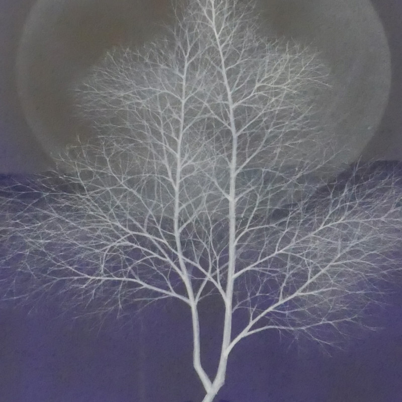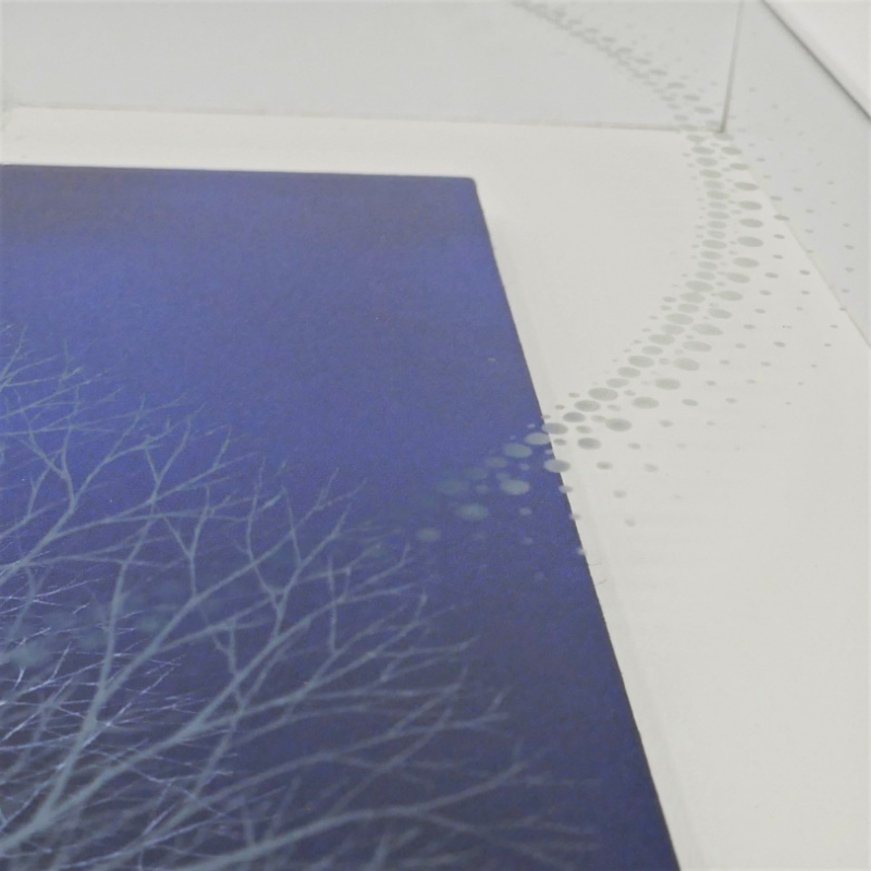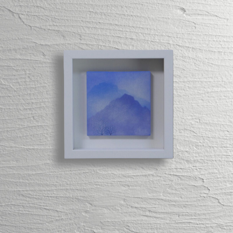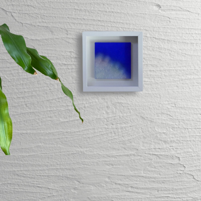 10㎝四方の小さな作品ですが、じっと見つめていると、その夜空は作品の大きさとは関係なく、吸い込まれるように深くそして澄んで広がっています。