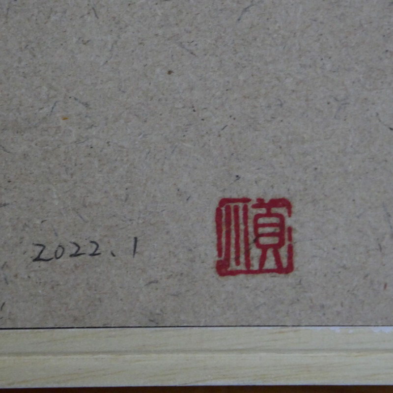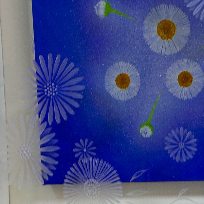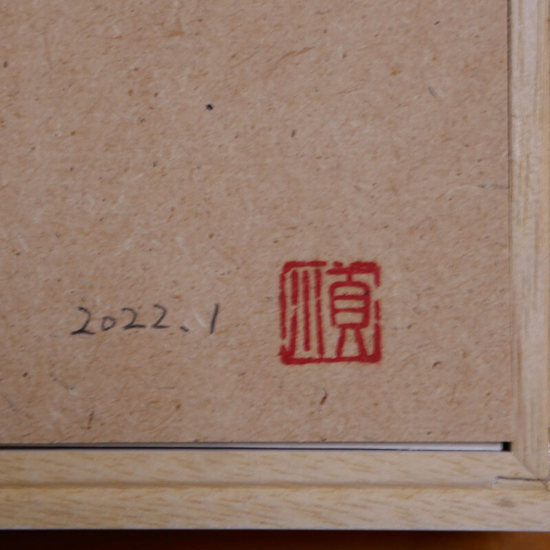 光の加減で彫りの影が入ったり、平面作品ですが、立体感のある作品です。