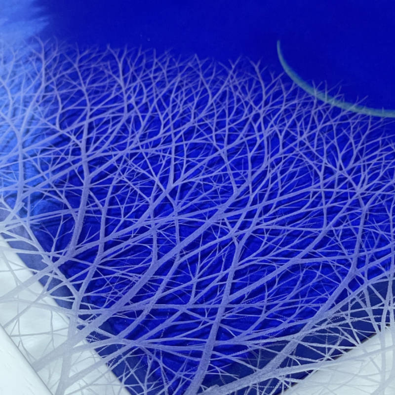 あおい繊細な世界を描きたくて、額のアクリル板にルーター等の電動工具で絵を描いています。