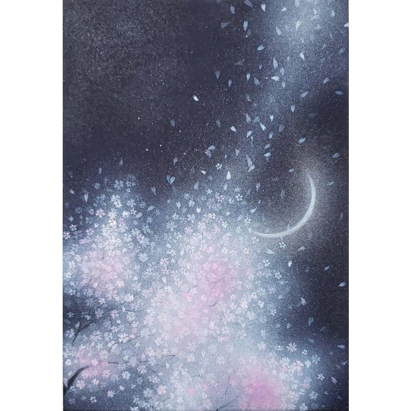 『桜は散るもの』だけではなく、舞い上がり、夜空に昇っているものもあるのでは?と思い描いた作品です。