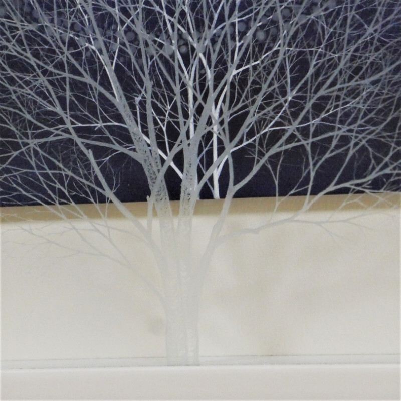 絵画とガラスに同じ様で違う木を描いています。
