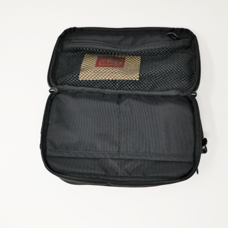 ボトムにナイロンハンドルを搭載し、単体としてもバッグインバッグとしても使用できる絶妙なサイズの新型ポーチ。