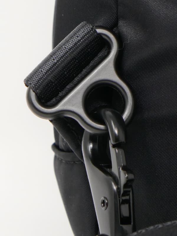 ・サイドとボトムにかけてデザインポイントになっているシートベルトはカラビナを取り付けることも可能