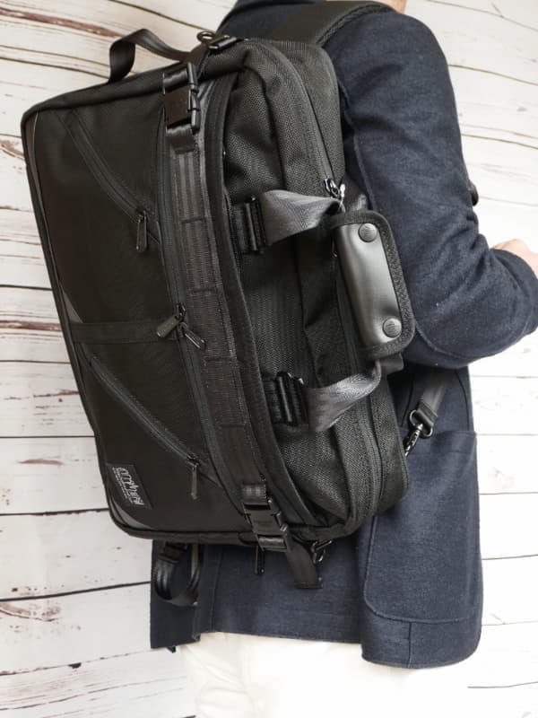 CORDURA® BALLISTIC NYLON1680Dは強度と軽さ、撥水性に優れており、雨天の影響も少なく日々の通勤で快適に電子機器を保護してくれます。また、自転車や電車といった様々な通勤スタイルにも対応できる3WAY仕様は、仕事だけでなくデイリーユースにも対応してくれるブランドを代表する使い勝手のいいバッグになっています。