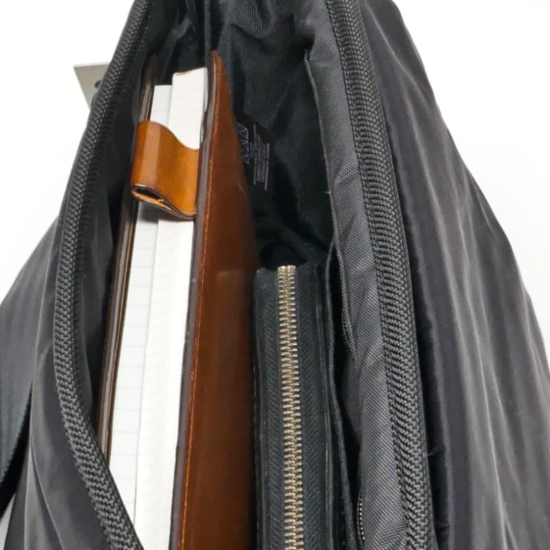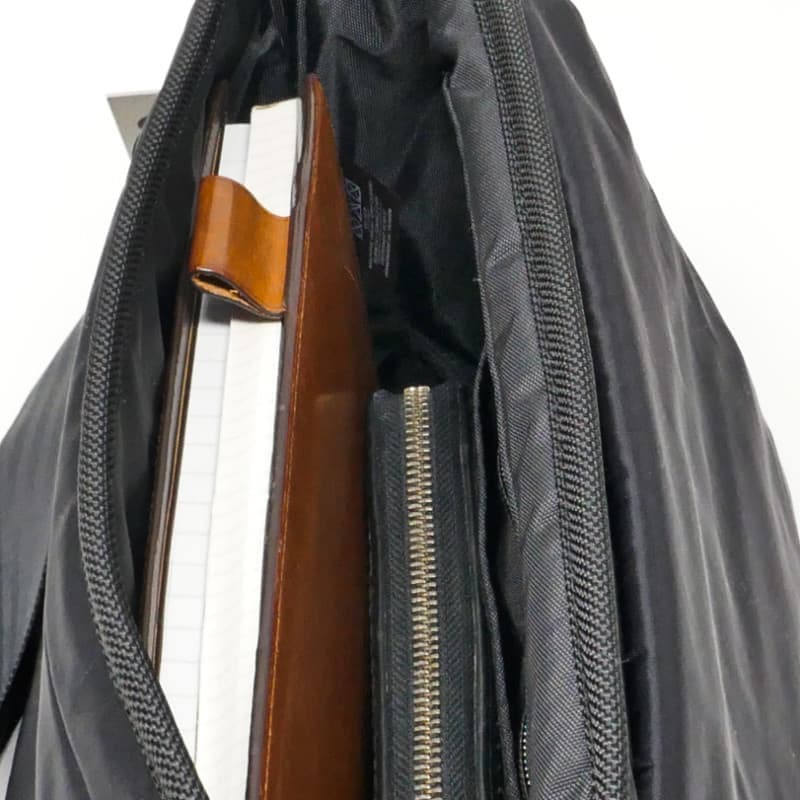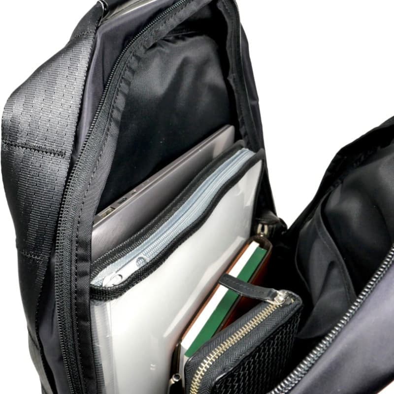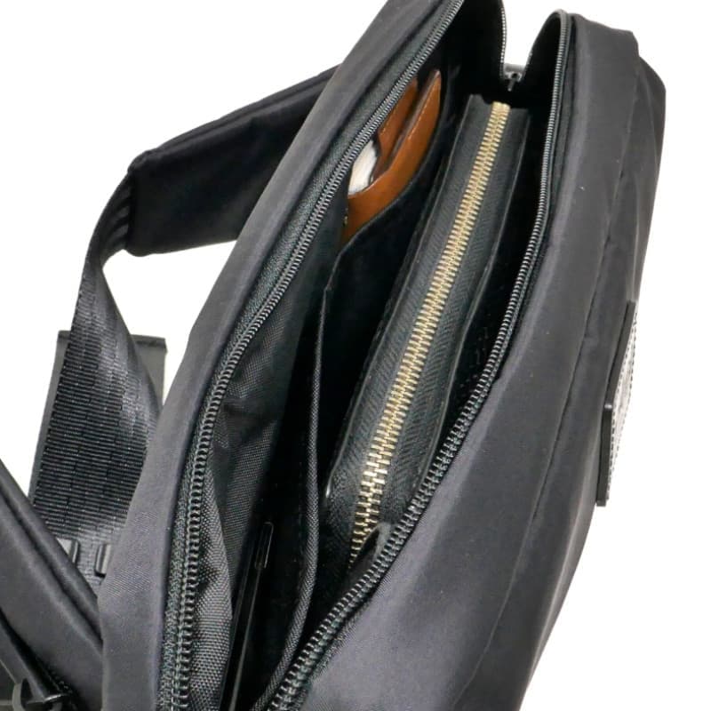 ·ブリーフケース、ショルダー、バックパックとしての使用時も使いやすいよう斜めに配置されたジップポケット