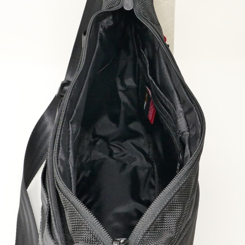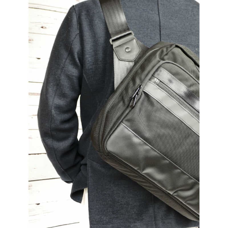 キーケースや携帯、ペットボトル等の収納に便利なサイズと豊富なポケットを随所に配し、大容量の収納ができるメッセンジャーバッグの特性とアーバンスタイルに対応した機能性を兼ね備えたフラップの無いショルダーバッグです。