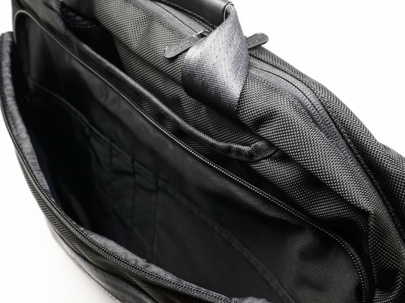 内部にメッシュポケットを備え、フロントポケットはコの字に開くなど使いやすさを追求。