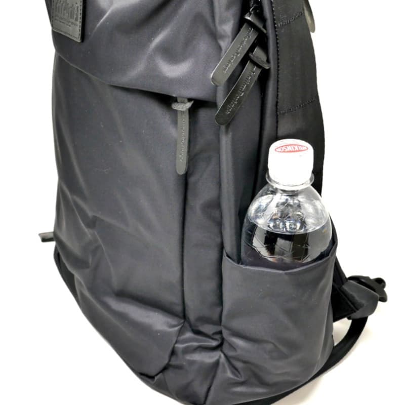 薄いマチながらペットボトルや、長財布等の必要なものを収納するのにちょうどよい設計となっています。
