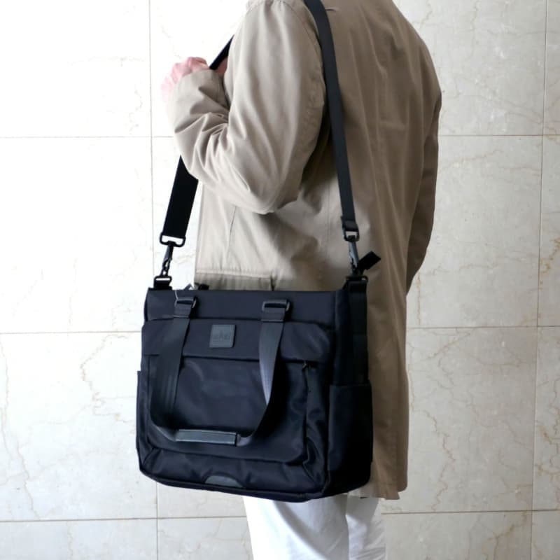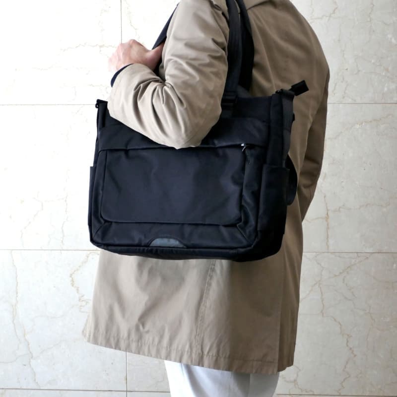 通勤などの移動時にはメッセンジャーバッグとして、ビジネスシーンにおいてはブリーフケースとして使用でき、着用シーンの幅を各段に広げた新しい形を提案します。