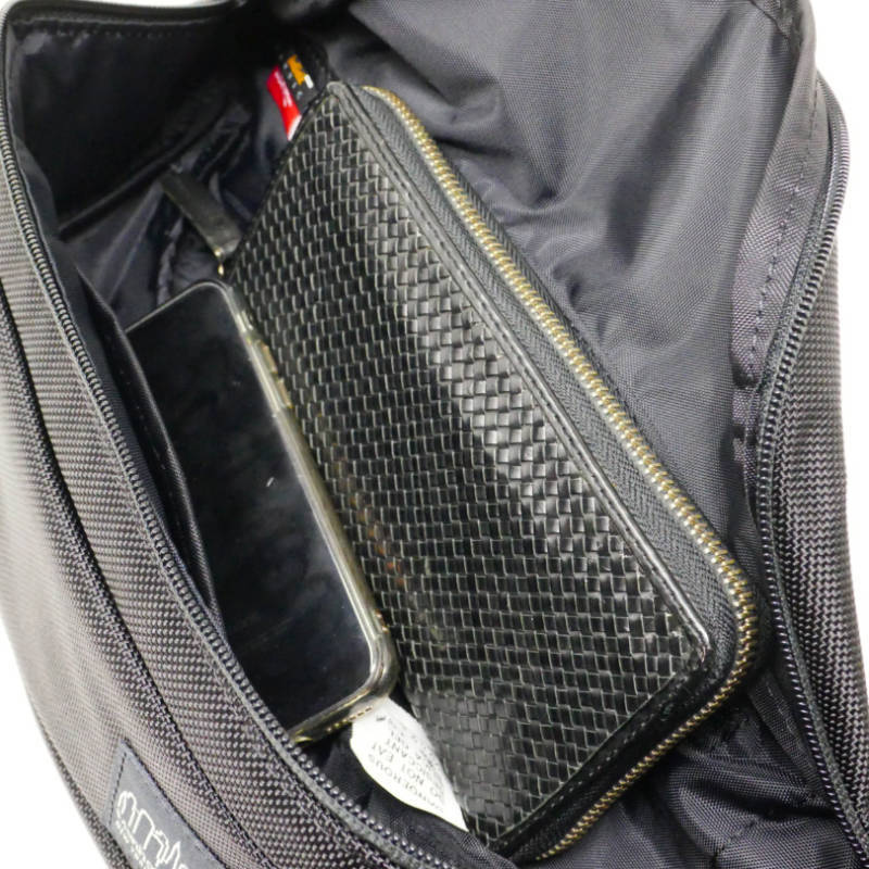 ・内側にはメッシュポケットが備えられ、貴重品の収納には便利な仕様