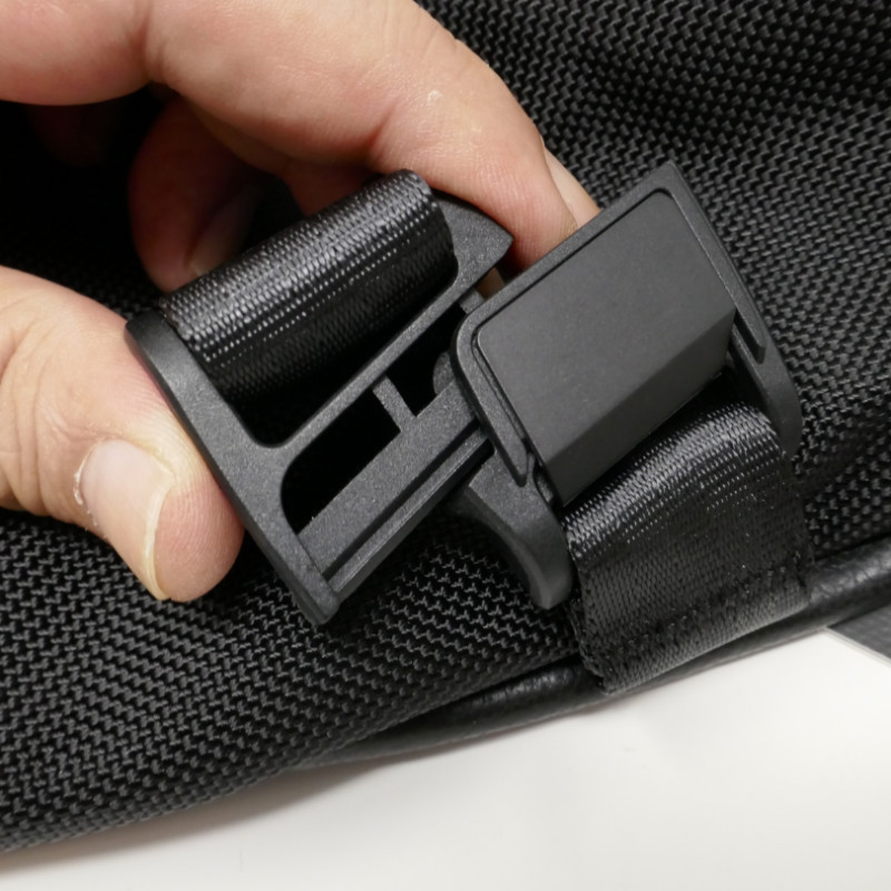・ショルダーストラップは通常より細いサイズのシートベルトストラップを採用