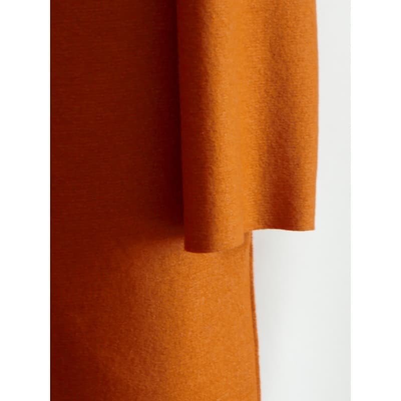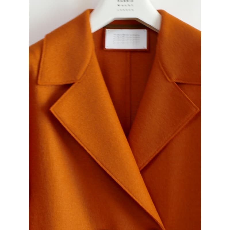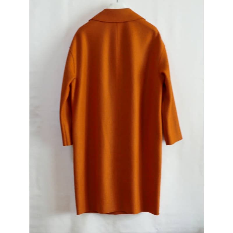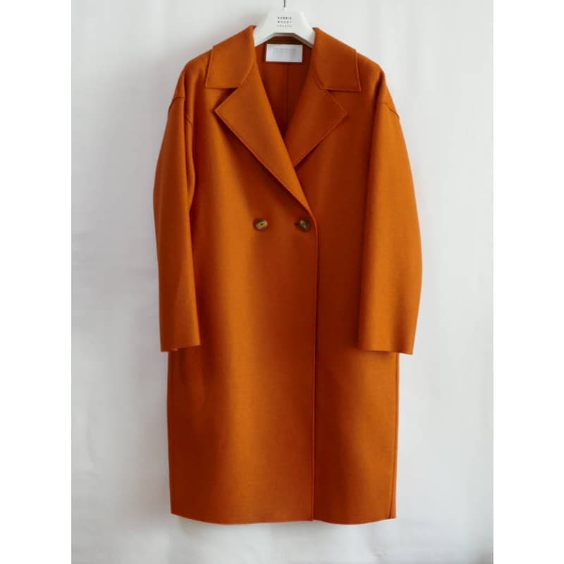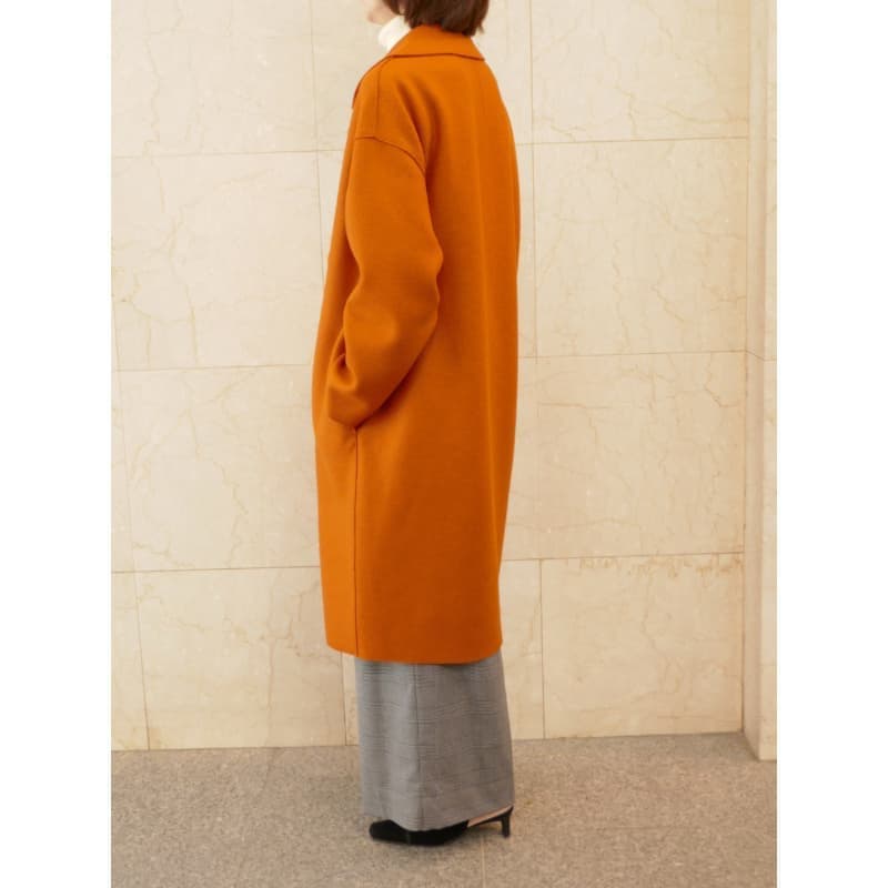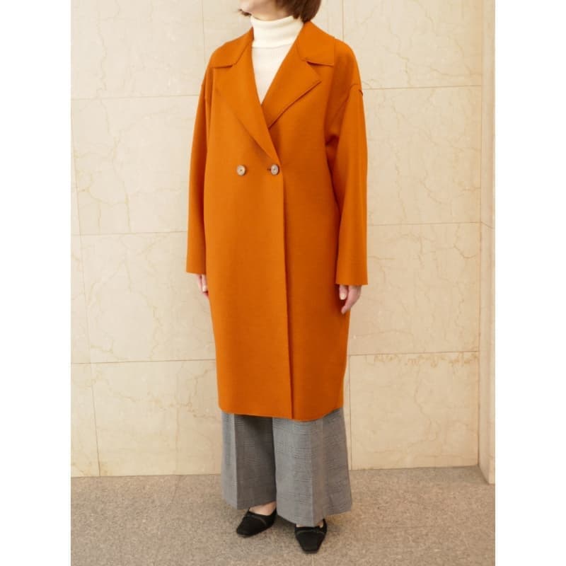人気のコクーンシルエット、ドロップショルダーのコートです。深く鮮やかなオレンジがとても新鮮です。