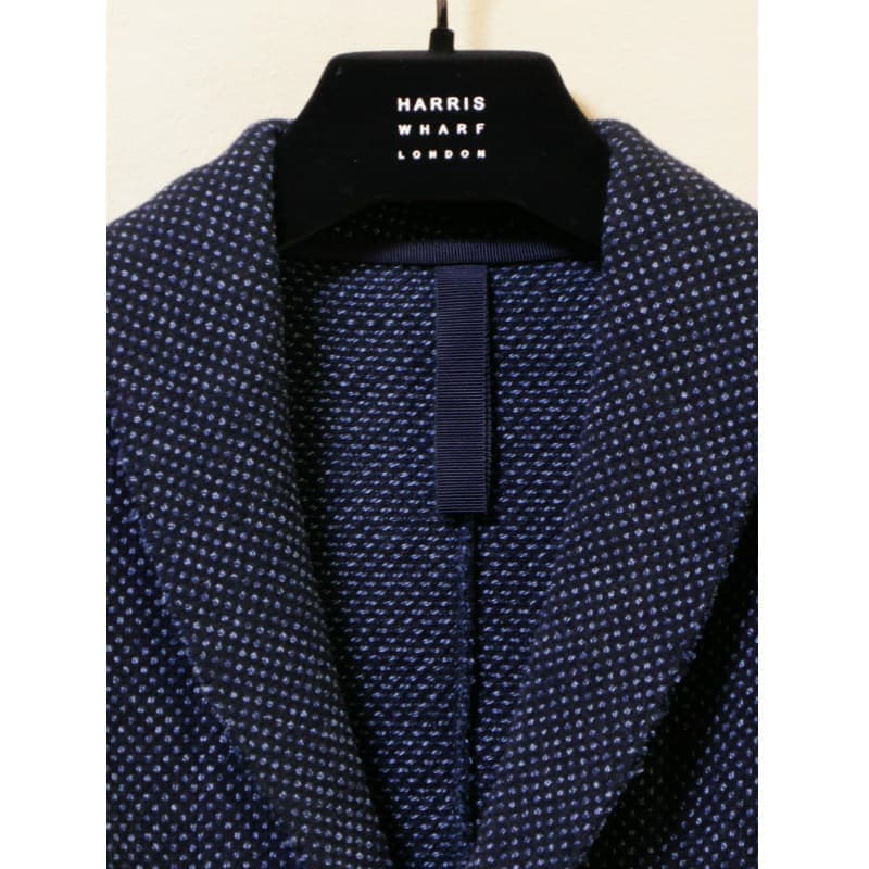 代々培った伝統的なテーラリング技術に、ローエッジ(切りっ放し)や裏地無しのデティールを 織り交ぜることで生まれる現代的なバランスがHARRIS WHARF LONDONの持ち味。 着てはじめて分かるシルエットの美しさ、着心地の良さにも定評があります。