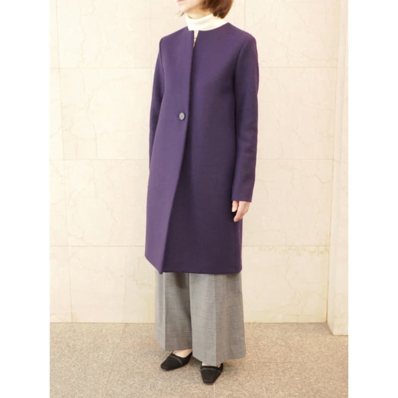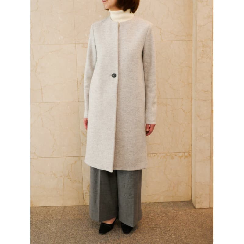 メキメキと人気の出てきたノーカラーコートです。