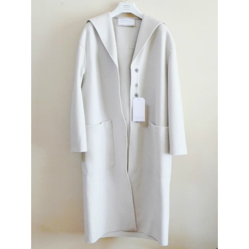 フード付きレディースコートです。こちらもHARRIS WHAF LONDONの定番的な人気のデザインです。