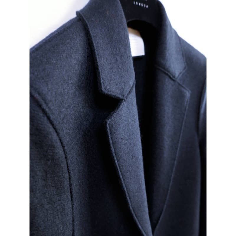 プレスウールならではの適度なハリ感がきれいなシルエットを守ってくれ、ドレスアップにも、ボトムスにデニムをはいてカジュアルダウンにもお好きなように!