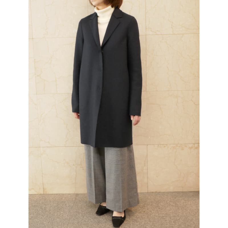 ダークブルーはシーンを選ばない、とても使い勝手の良いお色目です。紺のコートは多くの色との相性も良く、これ1枚でどこにでも行けます。