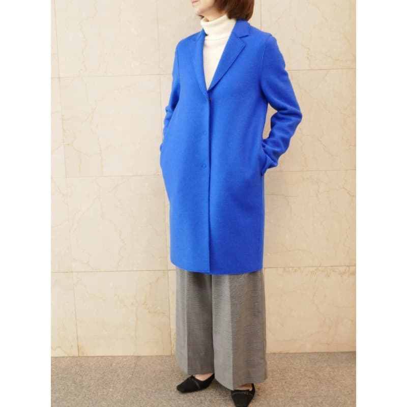 ターコイズのコートは、「一目見たら忘れられない!」そんなお色目です。何とコーディネートしようかを思っただけでワクワクすることでしょう。