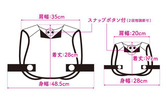 ヨダレなどでママの服が汚れやすく、抱っこ紐など胸元で長く触れあう時にご使用ください。サッと着けてサッと脱ぐことができるスナップボタン仕様(2段階調節)になっています。