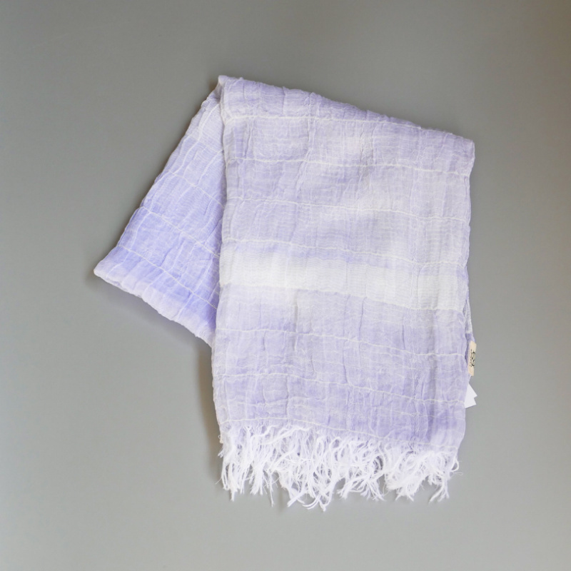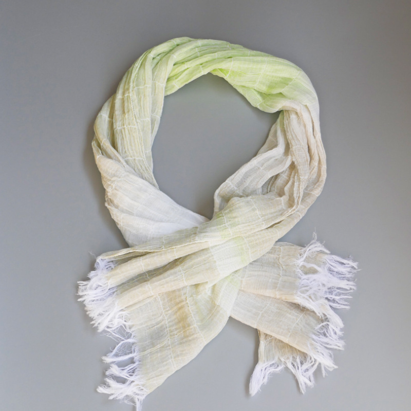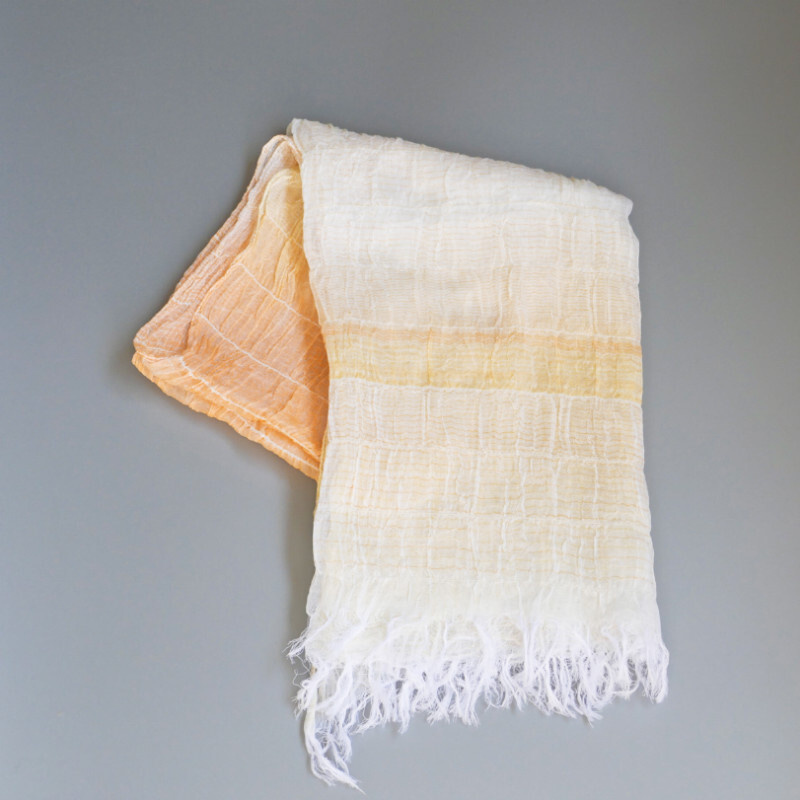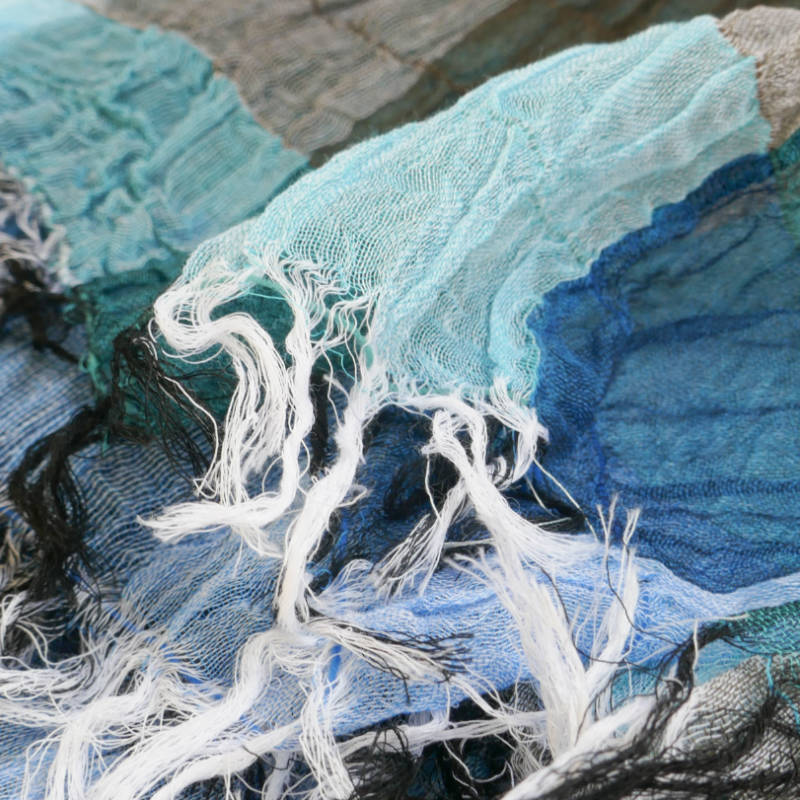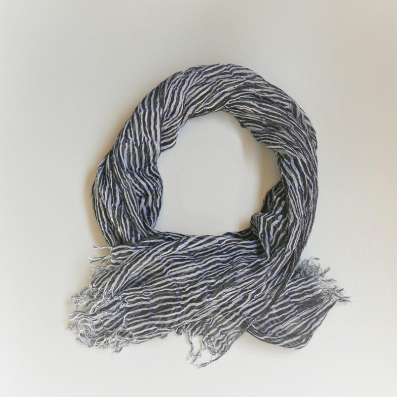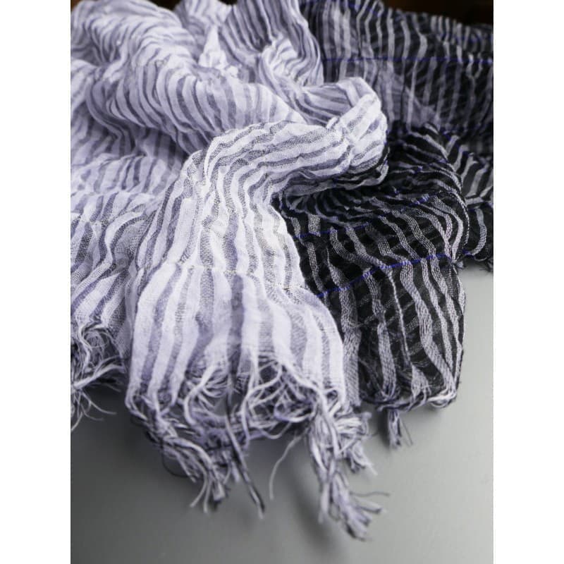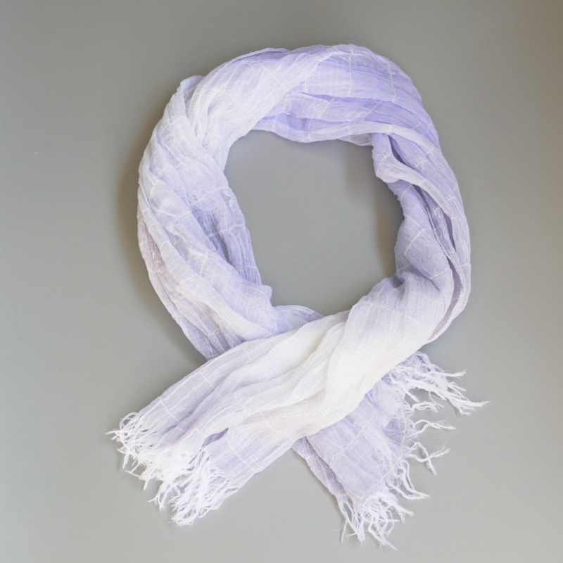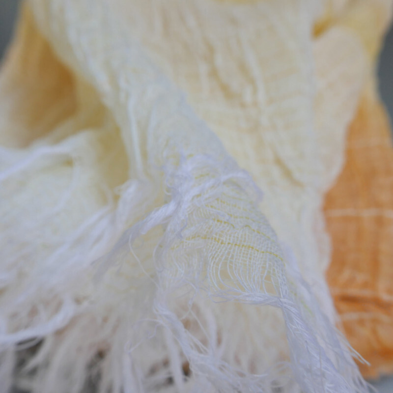 織馬鹿さんが作り出す播州織のマフラー・ストールには素晴らしい日本の伝統技術が生かされています。一枚一枚とても細い糸で織上げられて創り出されるその織地は、透け感があり緻密で肌触りが良く、軽く、そして何より美しいです。