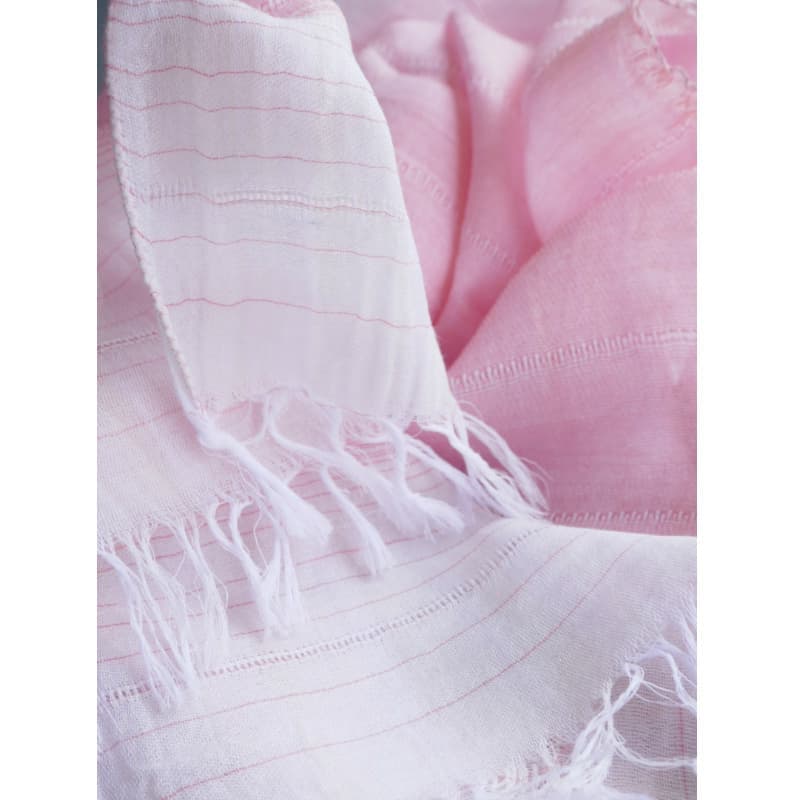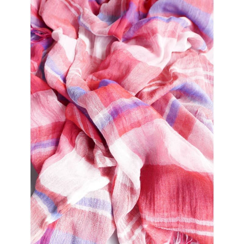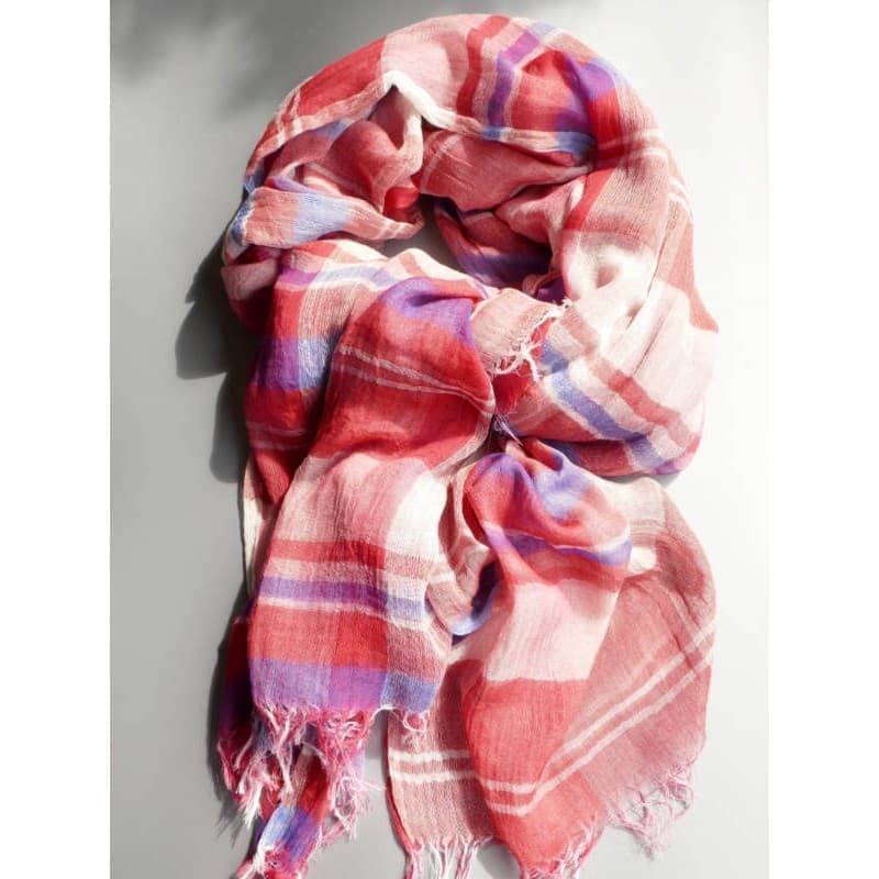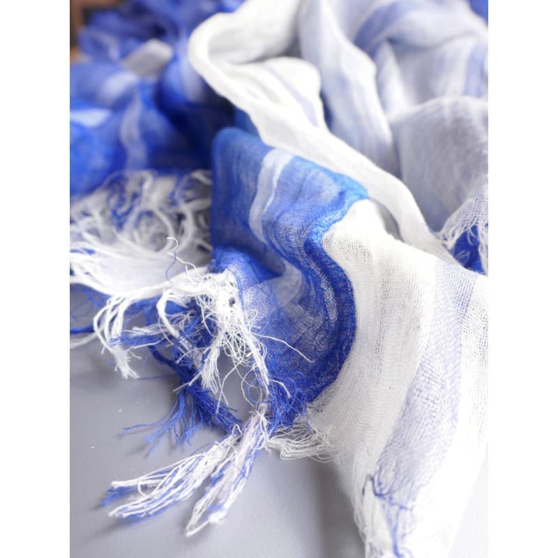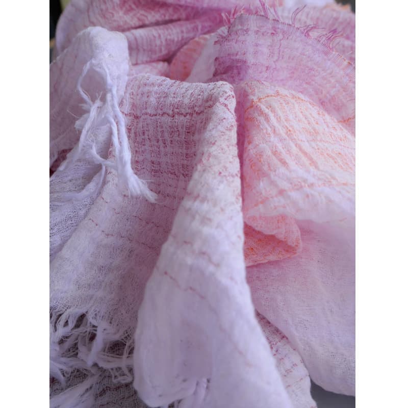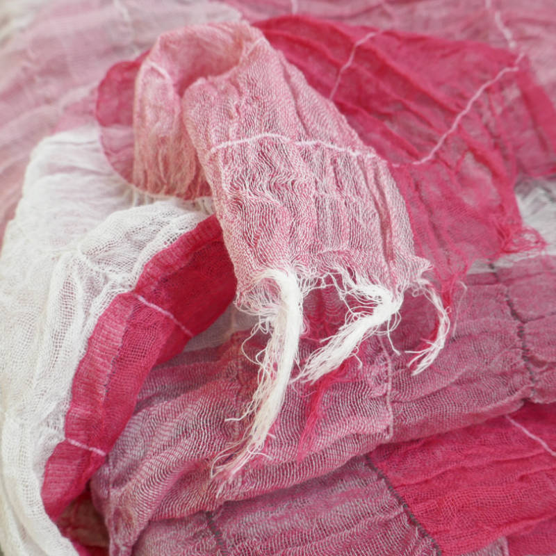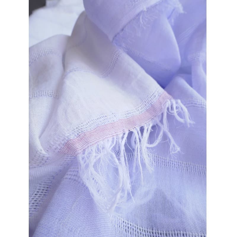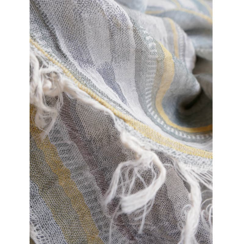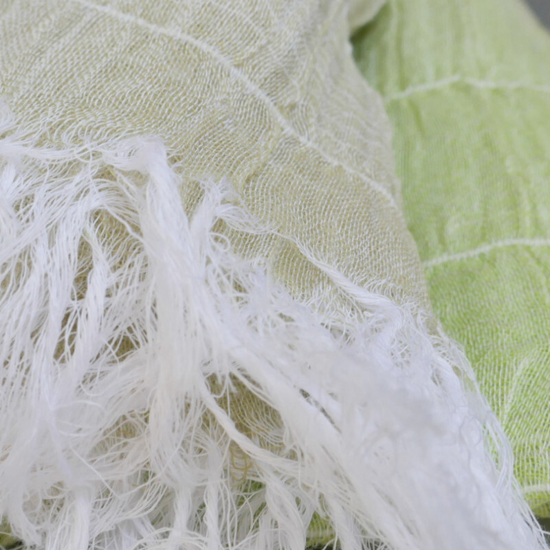 織馬鹿さんが作り出す播州織のマフラー・ストールには素晴らしい日本の伝統技術が生かされています。一枚一枚とても細い糸で織上げられて創り出されるその織地は、透け感があり緻密で肌触りが良く、軽く、そして何より美しいです。