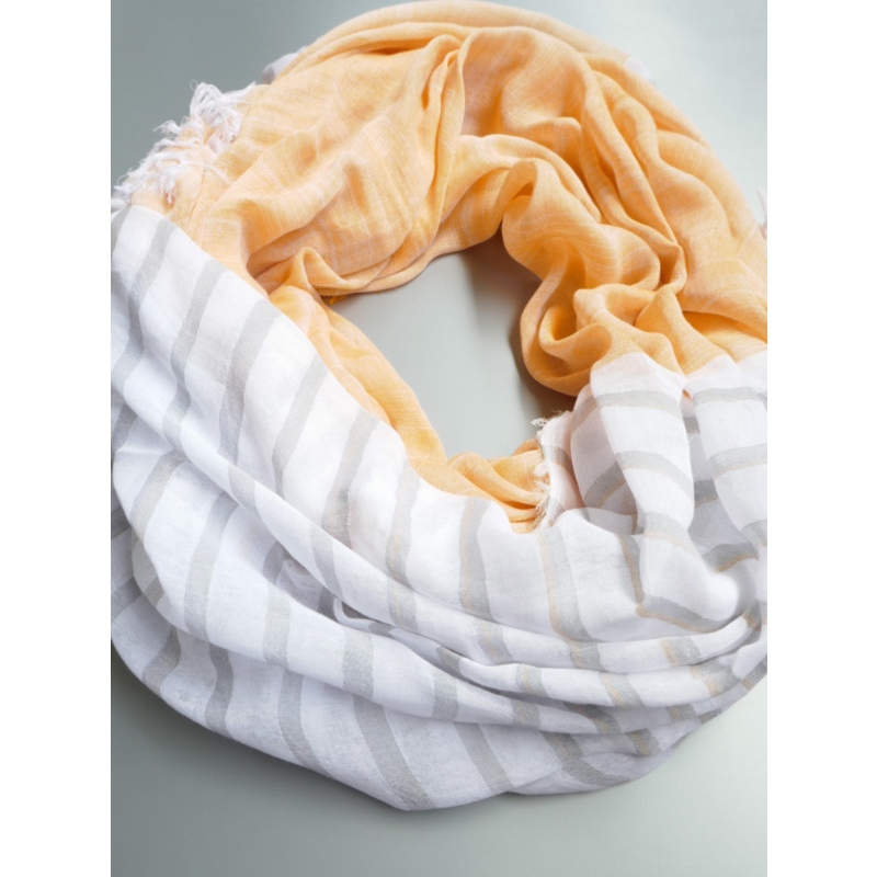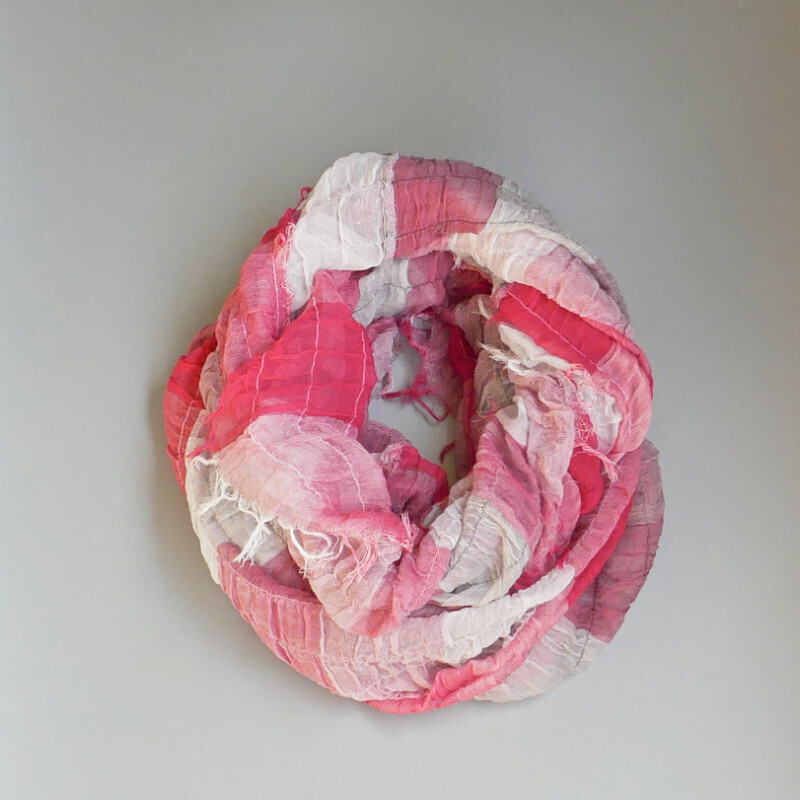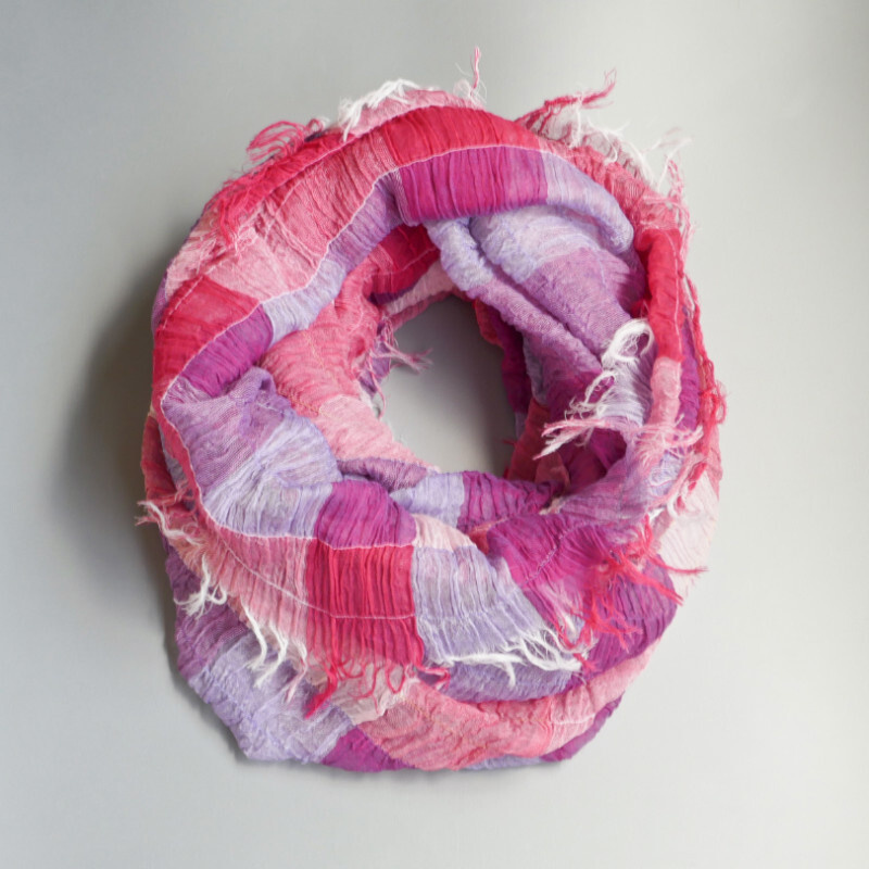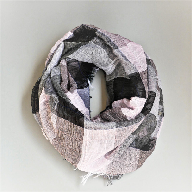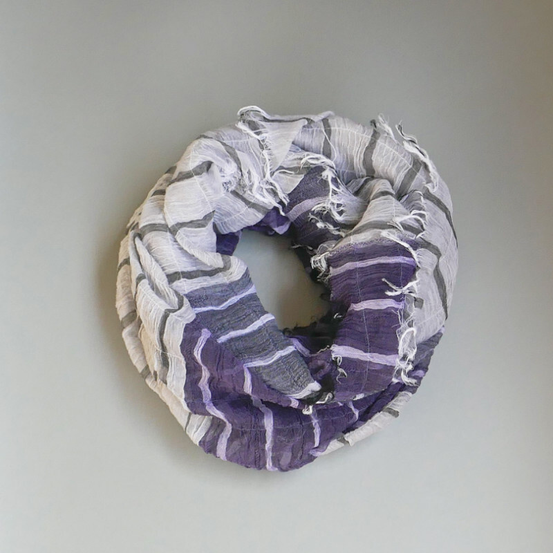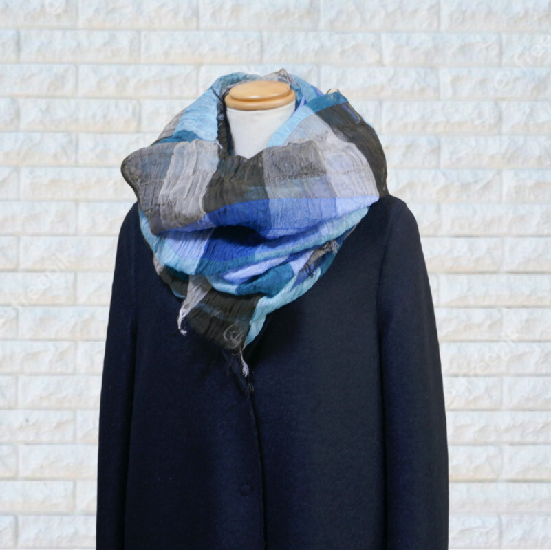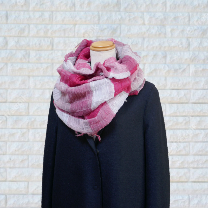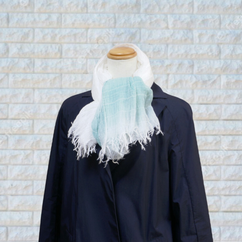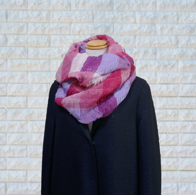 スヌードは、巻く手間がかからないのも魅力です。播州織の技術を生かした新アイテムを是非お試しください。