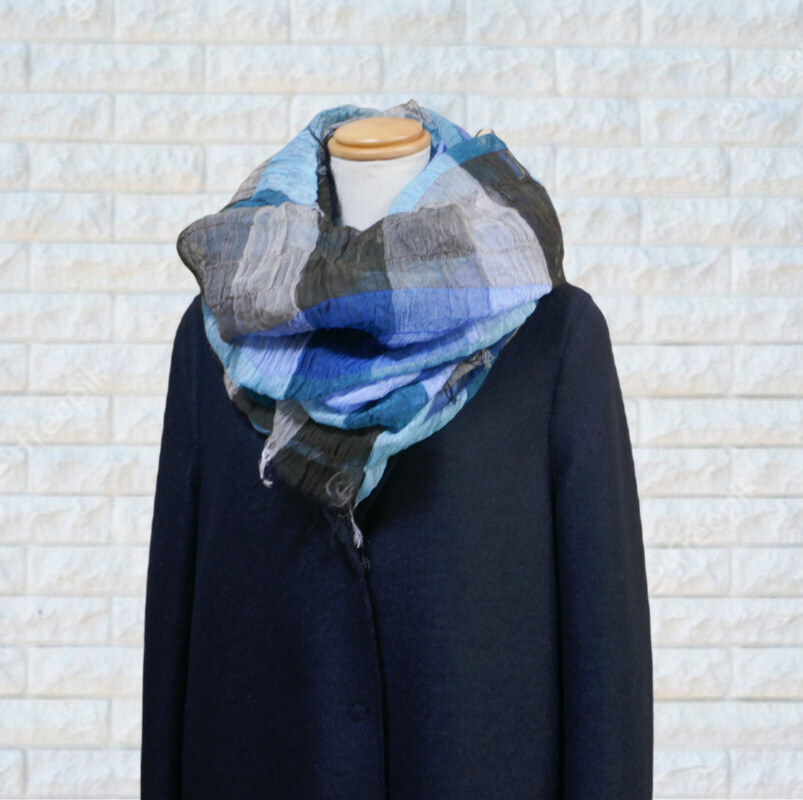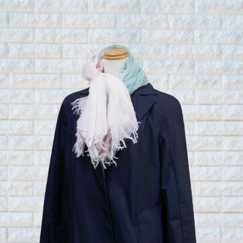 春先秋口には肩か羽織るようにお使い頂けますし、冬にはたっぷりと首元にお巻きください。