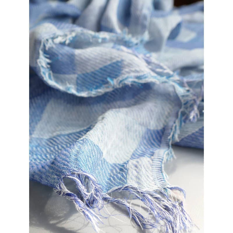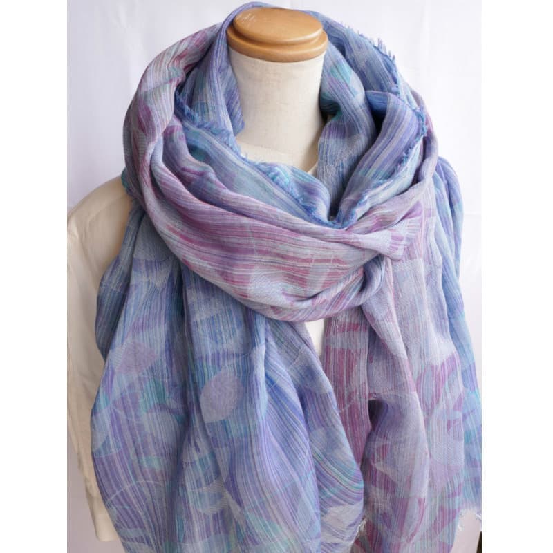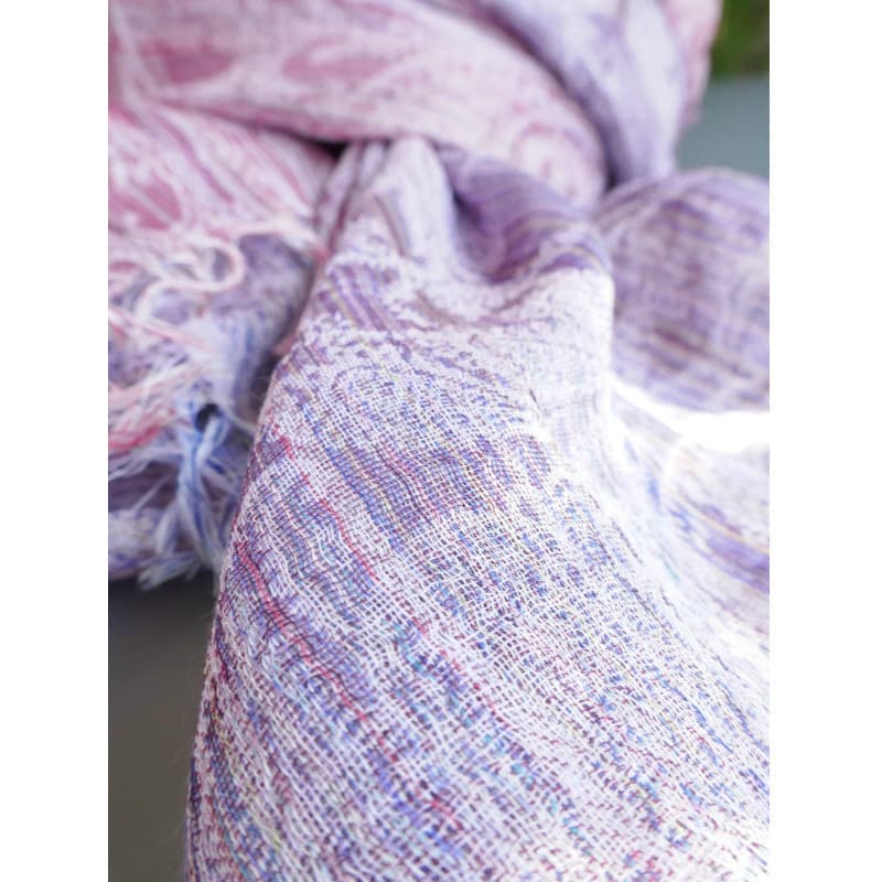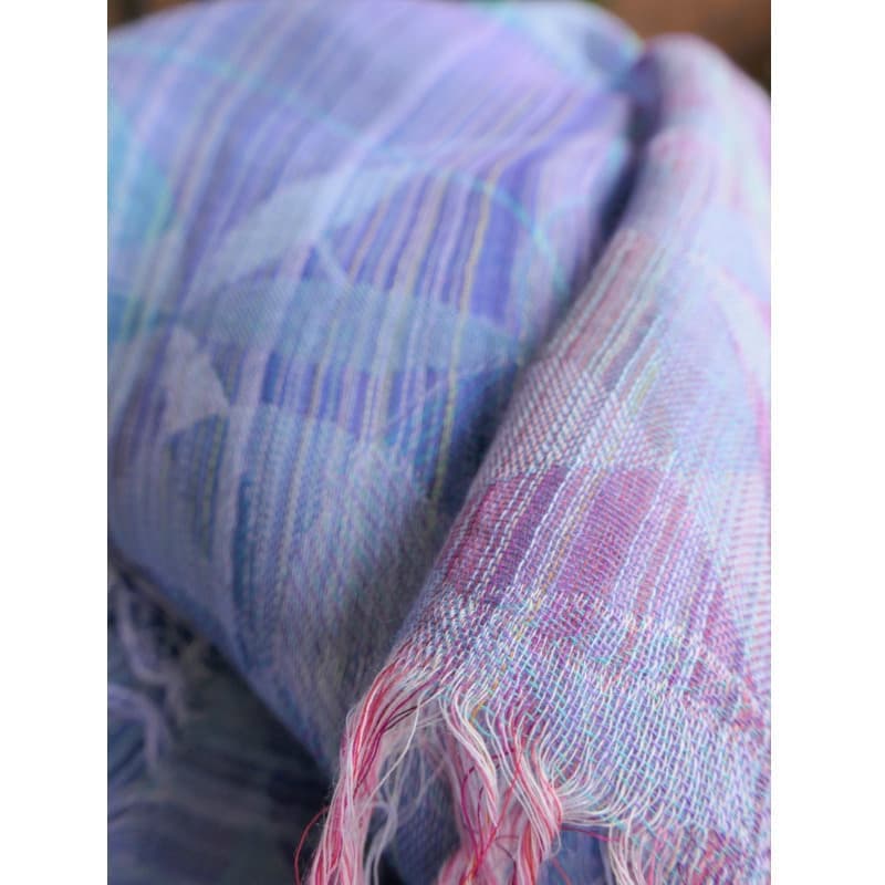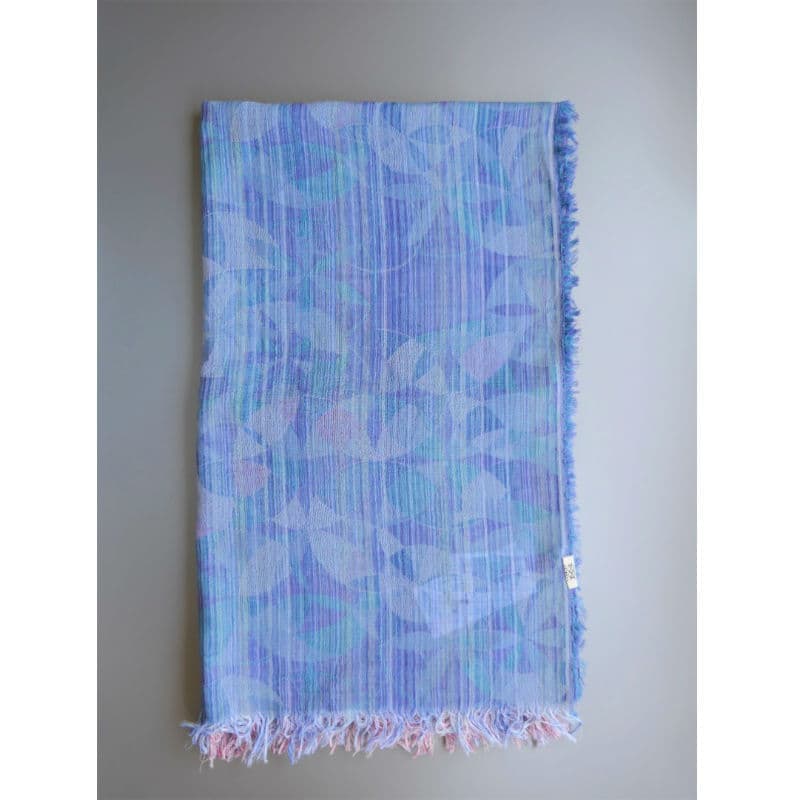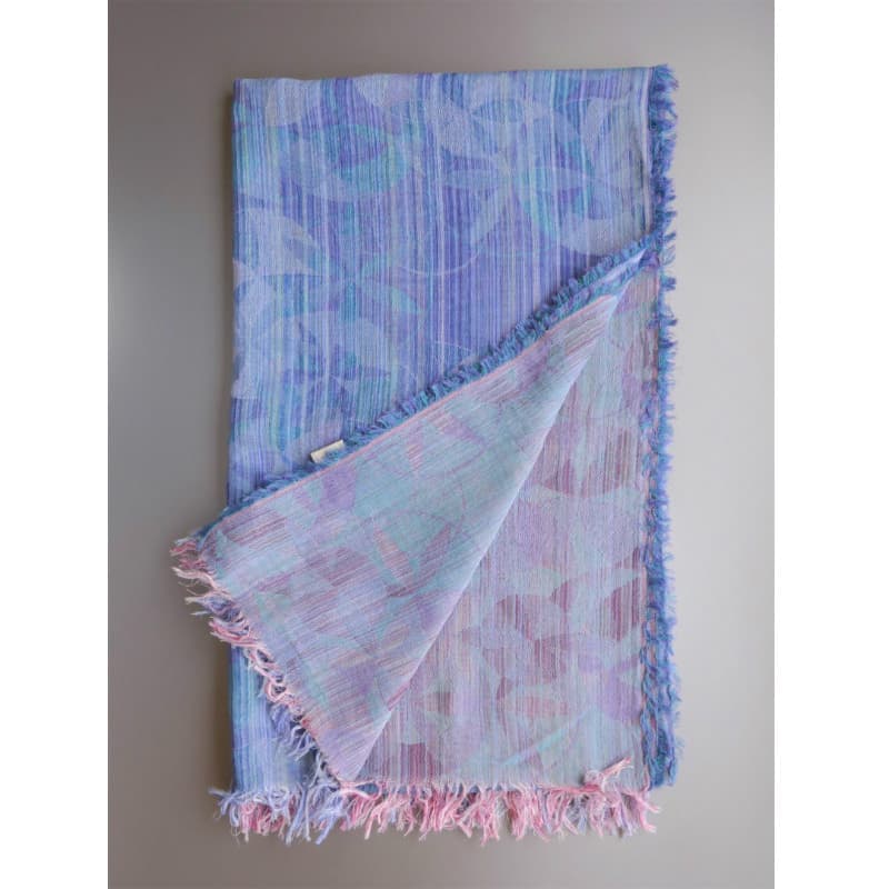 表面、裏面でブルーとパープルの色合いが楽しめる一枚です。何色もの色の糸により柄が浮かび上がります。