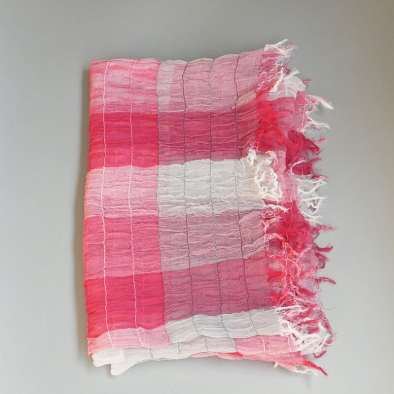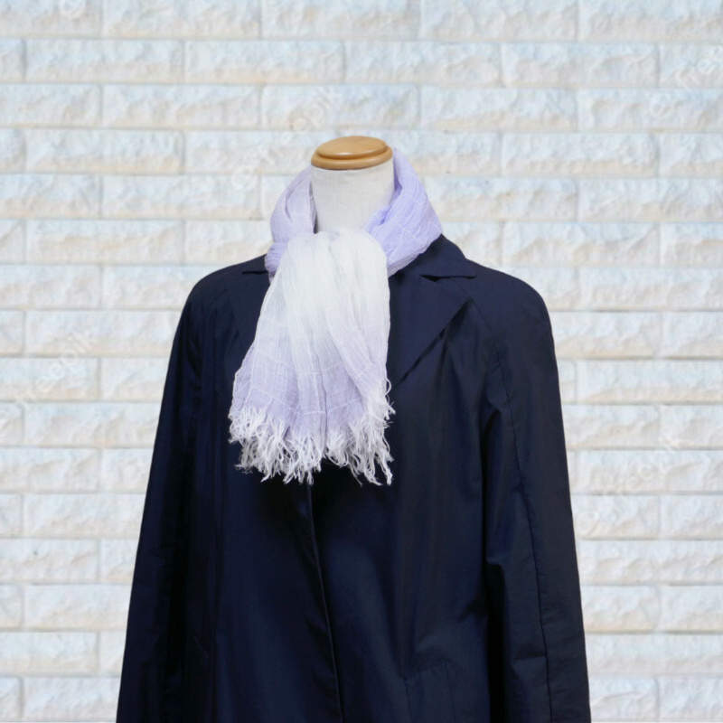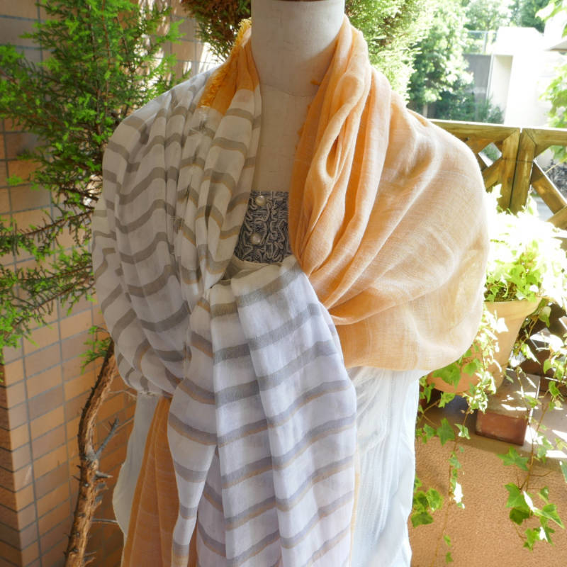 こちらは、織馬鹿の中では一番小さいサイズのミニストールです。小さいとは言いましても、60X160cmございますので、春のマフラーとしては使いやすいサイズかも知れません。