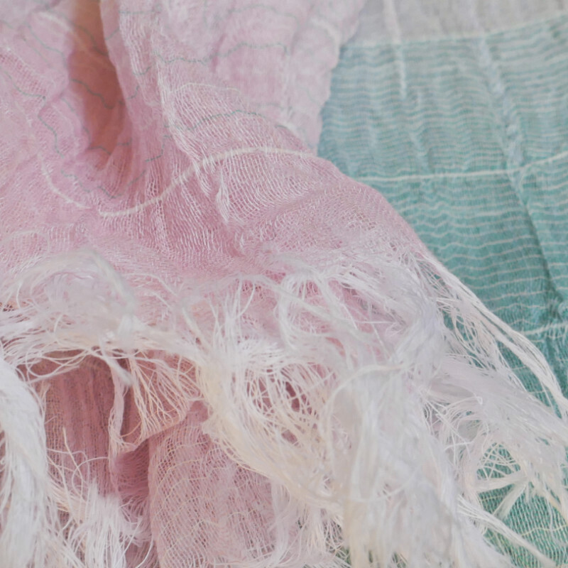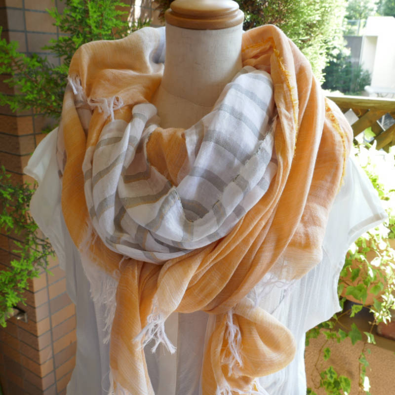 こちらは、ショールサイズの大判になります。たっぷりしたサイズをふんわりとお使いいただけます。