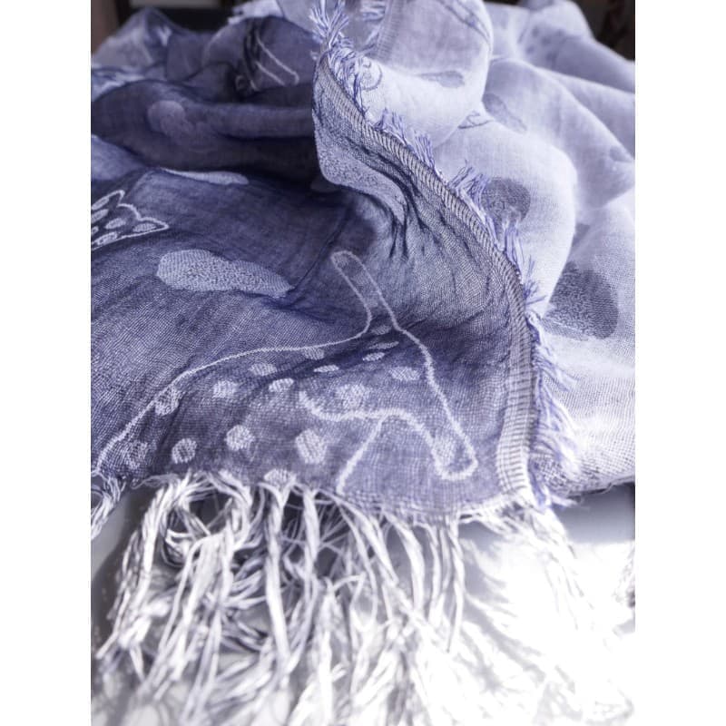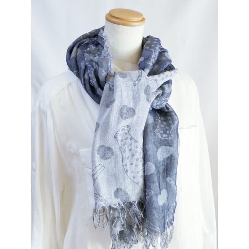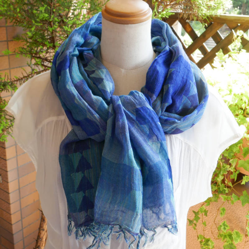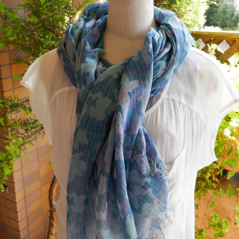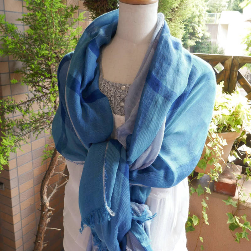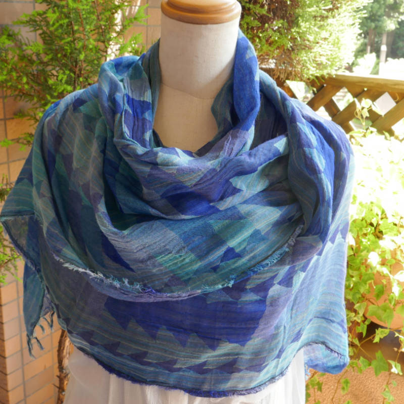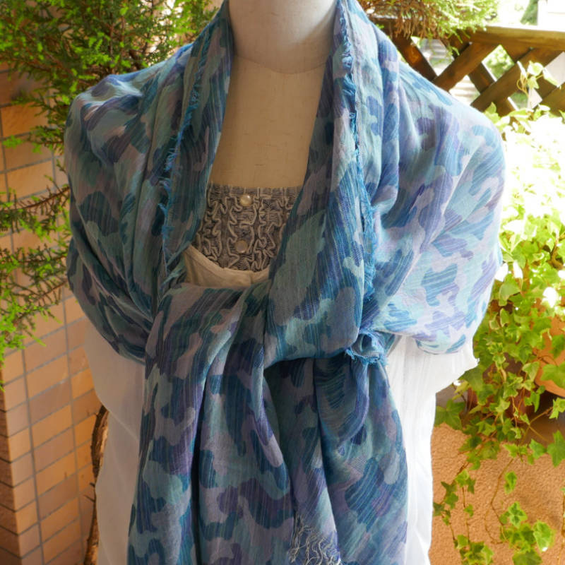 広げるとネイビーの印象の大判ストールです。