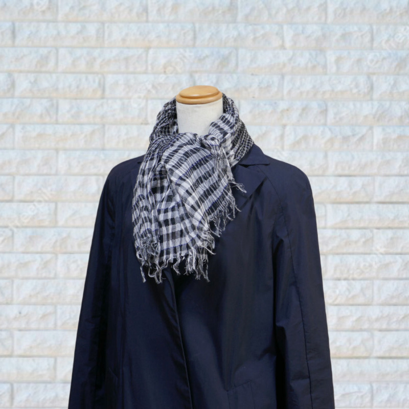 軽いコートにこの大判ストールを巻いてお出かけください。